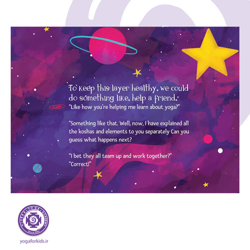 این کتاب با زبانی ساده، مفاهیمی مانند عناصر پنجگانه (Pancha Bhutas)، کوشاها (لایههای وجود انسان) و چاکراها (مراکز انرژی بدن) را برای کودکان قابلدرک و ملموس میکند.
